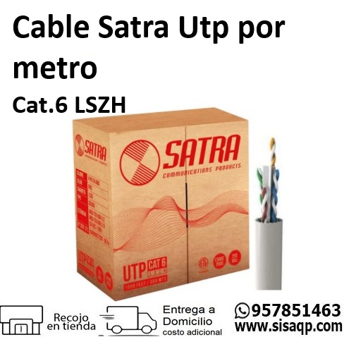 Optimiza tu infraestructura de red con el Cable Satra Cat6 UTP-LSZH-1 (24AWG), ahora disponible en SISAQP con la ventaja de venta por metro. Este cable de alto rendimiento es ideal para quienes buscan una conexión estable y segura, ya que su chaqueta LSZH (baja emisión de humos y cero halógenos) lo hace indispensable en proyectos que exigen normas de seguridad contra incendios.