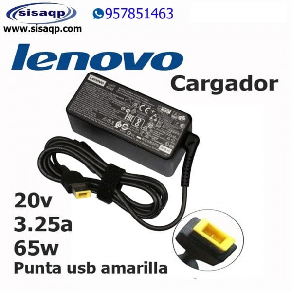 .Cargador Lenovo 20v 3.25a 65w Punta Rectangular Amarilla