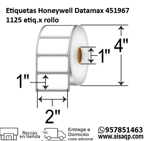 .Etiquetas Honeywell Datamax 451967 2″x 1″ Polipropileno 1125 etiquetas por rollo