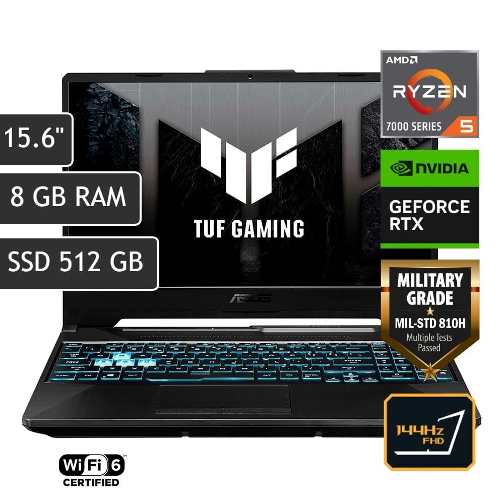 Productos similares a la Laptop Asus Tuf A15 FA506NF-HN005W Gamer Amd Ryzen 5 7535HS 8GB 512GB SSD RTX 2050 15.6″ FHD: