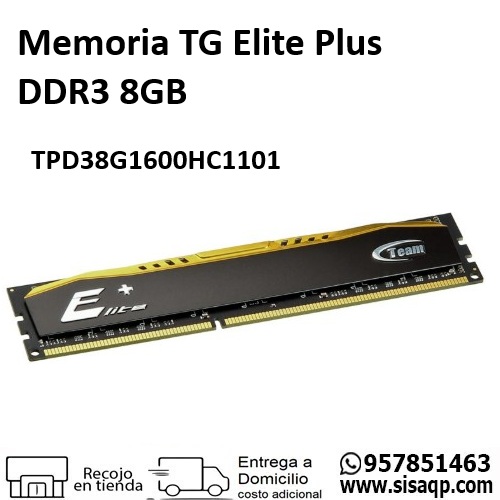 .Memoria TG Elite Plus DDR3 8GB DDR3-1600 MHz, CL-11, 1.5V TPD38G1600HC1101