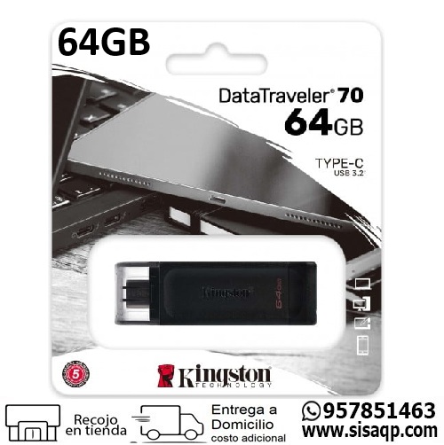 .Memoria Usb Kingston 64Gb DataTraveler 70, USB-C 3.2 Gen1 DT70/64GB – SISAQP