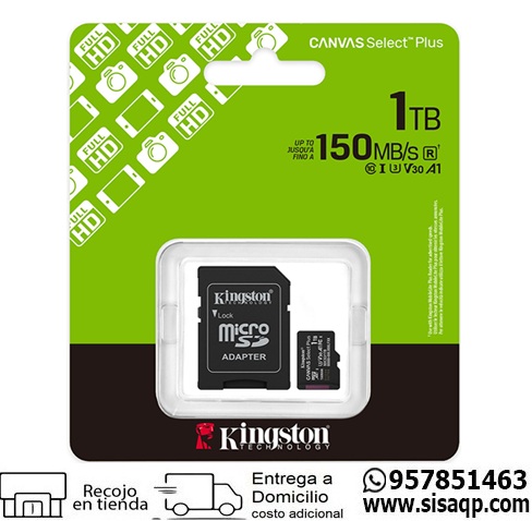 Lleva tu almacenamiento al siguiente nivel con la confianza que solo sisaqp y Kingston pueden ofrecerte. La tarjeta MicroSD Canvas Select Plus de 1TB está diseñada para ofrecer un rendimiento excepcional, permitiéndote capturar y procesar fotos de alta resolución o grabar vídeos Full HD sin interrupciones.