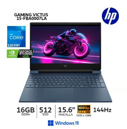 Notebook HP Victus 15-fa0007la, 15.6″ FHD IPS, Core i7-12650H hasta 4.7GHz 16GB DDR4-3200