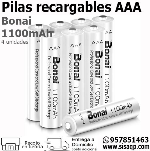 Optimiza el rendimiento de todos tus dispositivos electrónicos con las pilas recargables Bonai AAA de 1100mAh. Con SISAQP, te ofrecemos una solución energética confiable y económica que te permitirá despedirte de las pilas desechables.