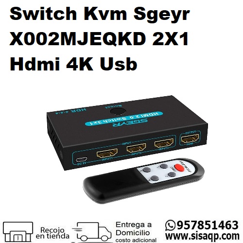 .Switch Kvm Sgeyr X002MJEQKD 2×1 Hdmi 4K USB 2 pc 1 monitor