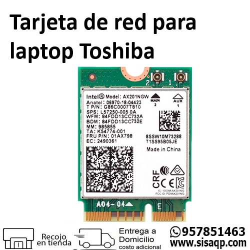 Recupera la conectividad inalámbrica de tu equipo con la Tarjeta de red para laptop Toshiba, disponible en Sisaqp. Este repuesto es la solución ideal para laptops que presentan problemas de conexión, señal débil o fallos intermitentes en el Wi-Fi. Diseñada bajo estándares de alta eficiencia, garantiza una navegación estable y veloz, permitiéndote trabajar o estudiar sin interrupciones.